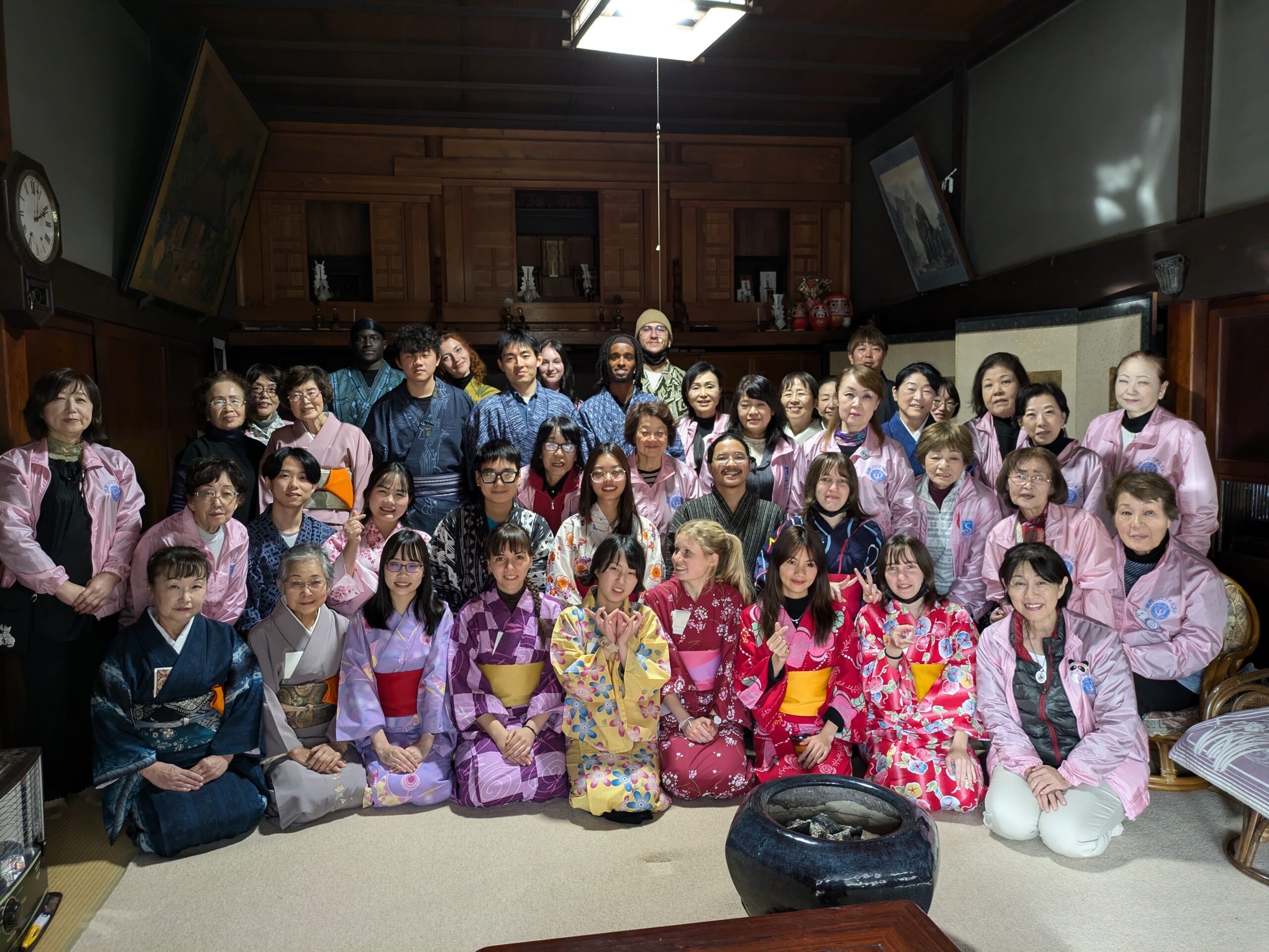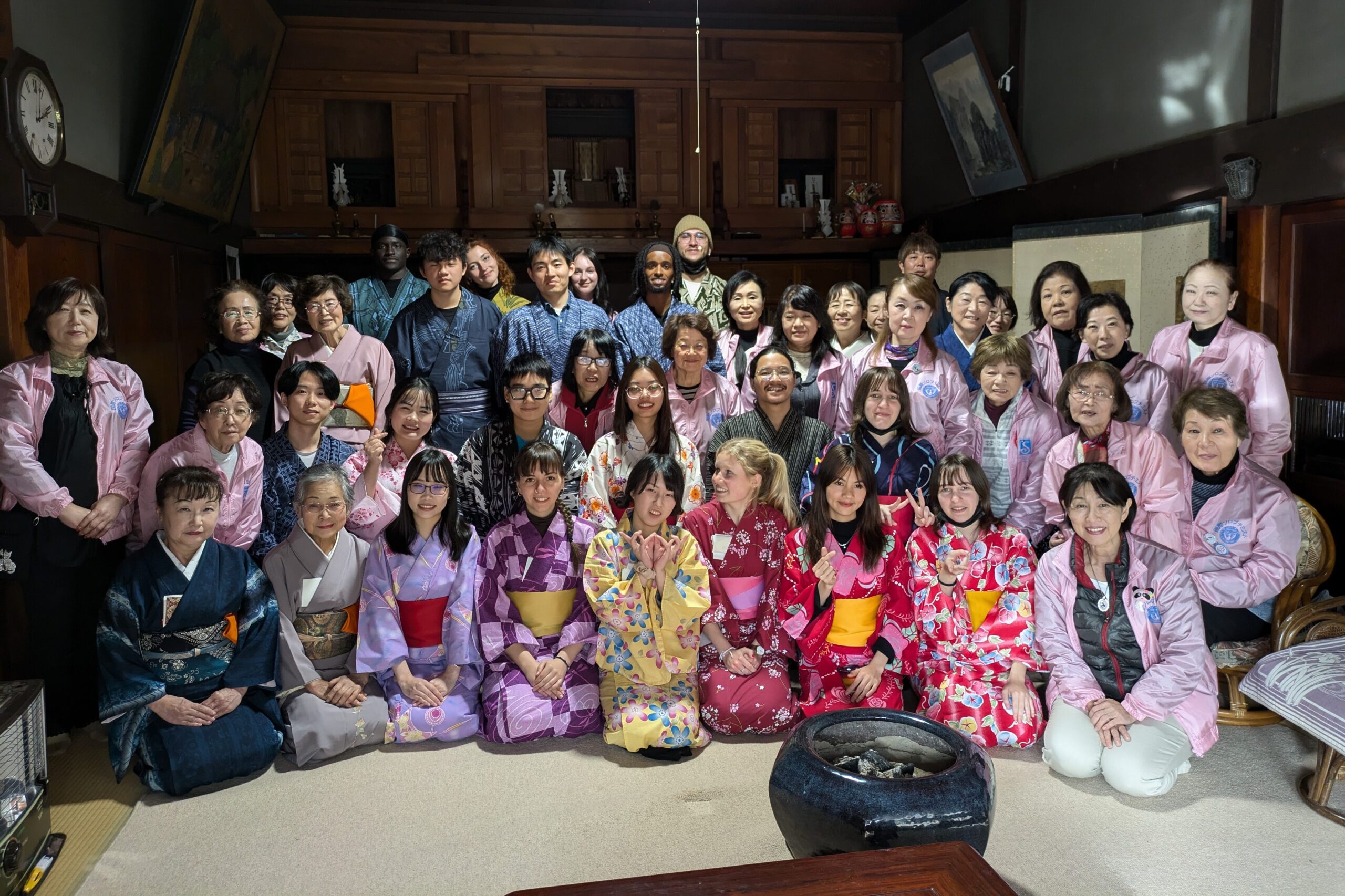 今年は福島大学の留学生19名をお招きして福島市上鳥渡の児玉果樹園で真っ赤に色づいたリンゴをもぎ、国登録有形文化財である矢吹邸に移動し、昼食(豚汁とおにぎり)を食べた後は浴衣に着替え、茶道の作法や部屋の飾り、器具などの説明を聞き、積極的に自分でお茶を点てる体験をして日本文化を楽しみました。